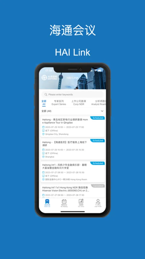 Hai Link 作为海通国际的Corporate Access (CA) 的服务平台,为海通国际的机构投资者客户提供海通国际CA服务相关产品 (如公司路演,专家服务,联合调研等)的介绍和详情,以便海通国际的机构投资客户进行浏览并报名。