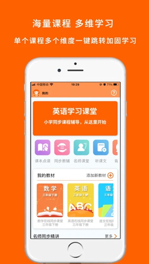英语学习课堂是一款基于语文、英语、数学课本内容所设计的同步课本点读、名师讲课视频、名师多维教辅、听课文、学单词、写汉字功能一体,致力于帮助家长辅导孩子难、解决孩子学习不扎实的问题!课堂学习之外还配备了拓展学习:数学公式、应用题方法指导、数学题库、英语写作、阅读、语法、语文阅读、写作;奥数与知识点精讲,基础学习:拼音、字母、汉字、对话、音标、儿歌、故事、绘本、国学等学习资料