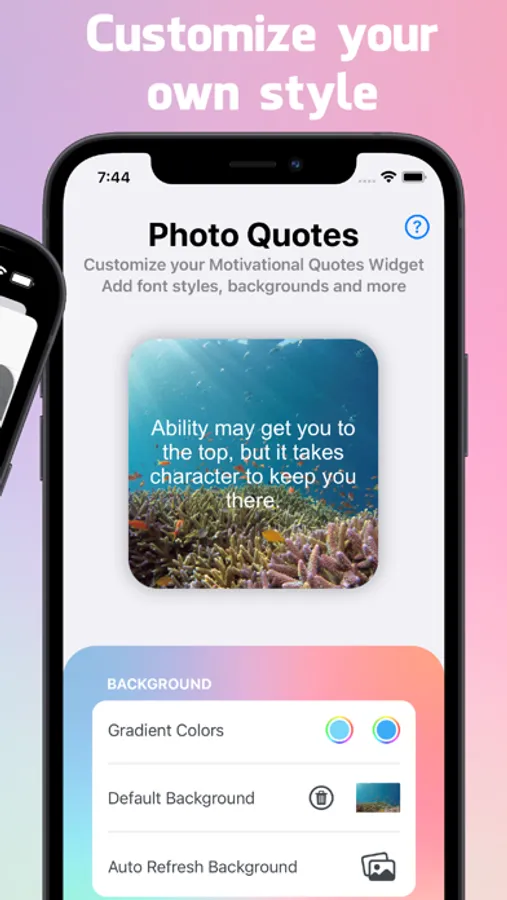 Have you ever thought about how to motivate yourself? Quotes is a good choice, but if you can add photos, such as your parents, children, friends or faith, the effect may be better. Photo Quotes merges both of them, it's not only quotes but also your favorite photos can be added. Photo Quotes will bring you full of energy at any time.