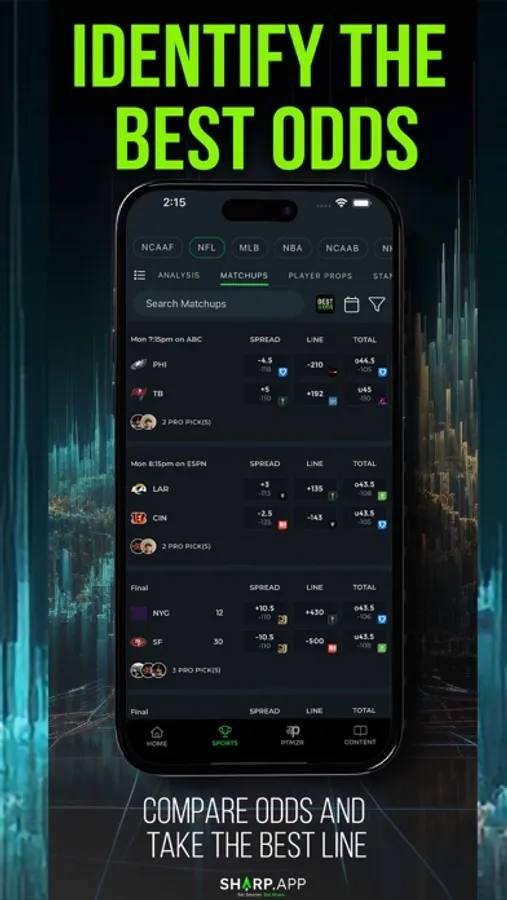 + Advanced Game Centers — Handicap & research a bet in one centralized location! Featuring tools and information for both upcoming and live games! Follow the game live and track the progress of your plays with detailed in-game team and player statistics. Pregame tools include our Player Prop Finder, Betting Trends, Player News, Line Movement Charts, AI Predictions, Top Props, and more!