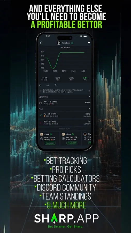 + Exclusive Betting Community — Join other enthusiasts and chat with our team of pros and content creators in our exclusive Discord community. Share your picks with our Sharp App users! (https://discord.com/invite/GywTJw786S)
