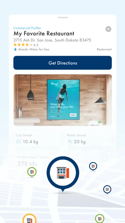 o Find your favourite restaurants, using an Alxedo Smart Water Purifier to consume their tap water with all peace of mind