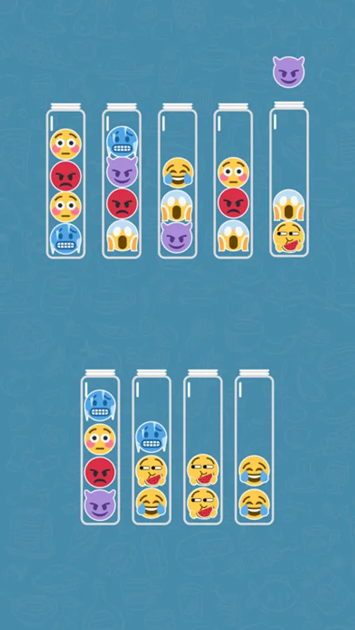 Emoji Sort is a classic expression sorting puzzle game. Sort and arrange the expressions in the container until all the same expressions are in the same container.