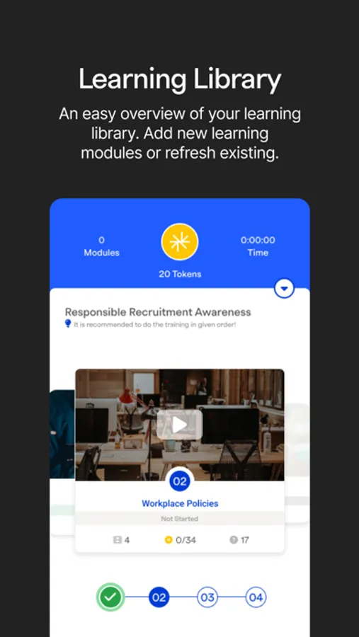 Each training module takes between 15-20 minutes to complete and consists of engaging content, to interact with while following a guided gameboard. Which each step, you’ll progress along a training route and collect coins.