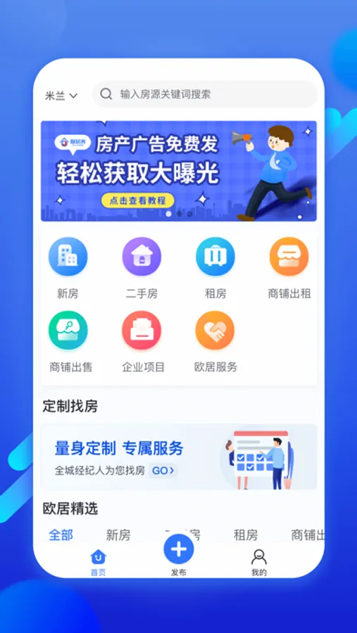 欧居客是服务于欧洲华人的房产资讯平台,用户可以查看国内房产进行投资,也可以查看欧洲的新房、二手房、租房等信息进行置业。提供给客户房产信息的同时,服务于华人经纪人,帮助快速消化手头房源。