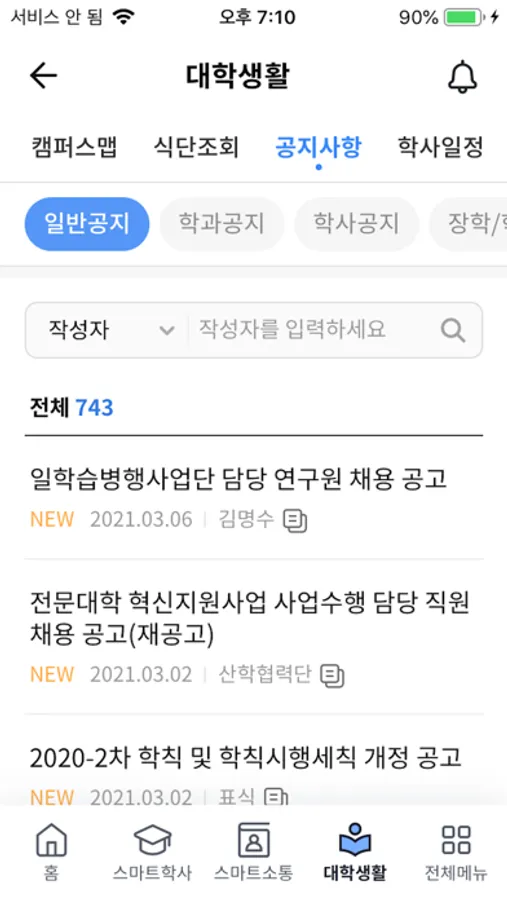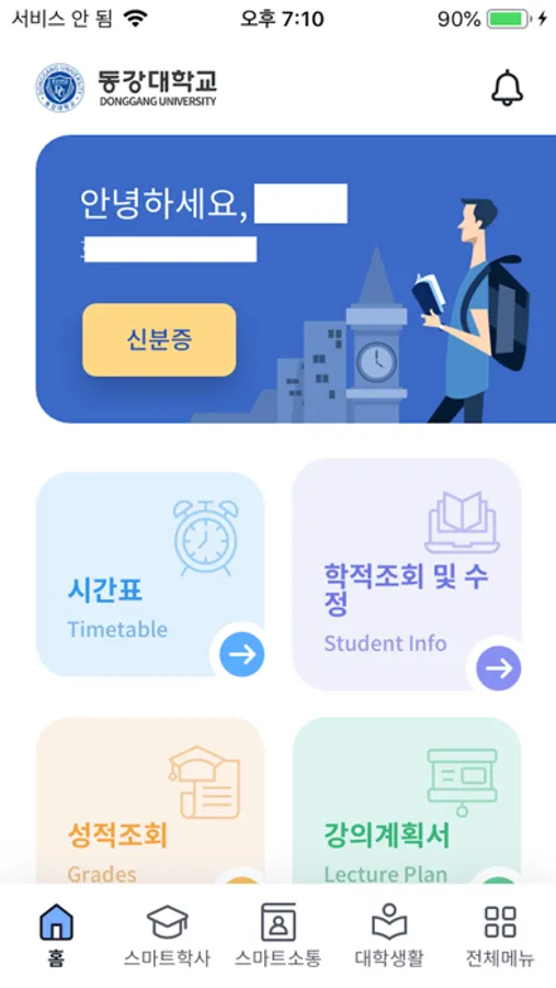 - 캠퍼스맵,각종공지사항,학사일정,강의실현황,통학버스시간표,생활관,식단조회