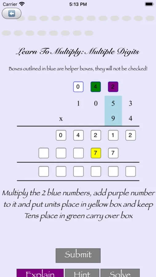 From simple addition to more advanced long division, users can choose from a variety of problems to improve upon their proficiency, accuracy, and speed. Our app differs from others on the market because of the way in which we assist learning; features such as hints, step-by-step instructions, and detailed stop motion animation video explanations all contribute to an enriched and enjoyable learning experience for any child. This allows students to not only see that a problem is wrong, but understand why it is wrong and how they can avoid the same error next time.