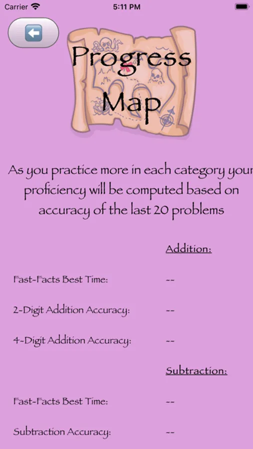 The Level Map makes sure that users are aware of their own proficiency level and gives them a competitive motivation to beat their own high scores in each arithmetic concept without the distractions and attention diversion of a game.