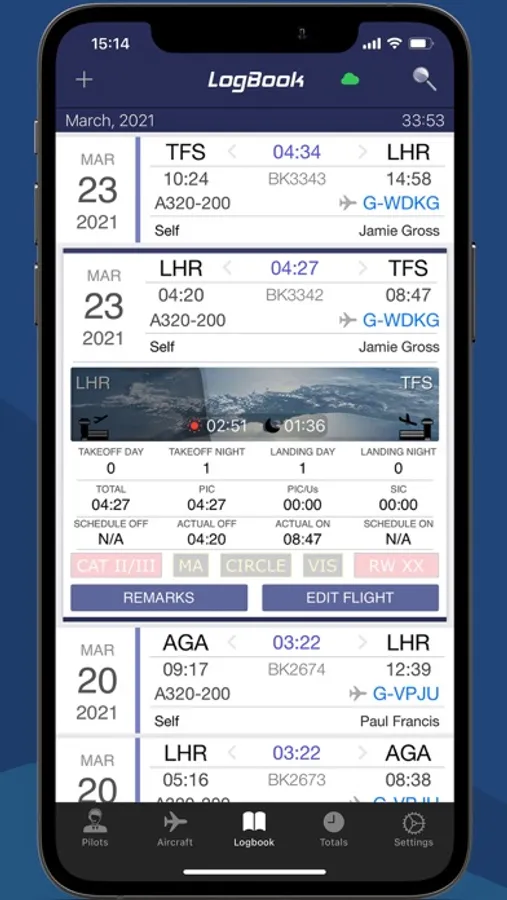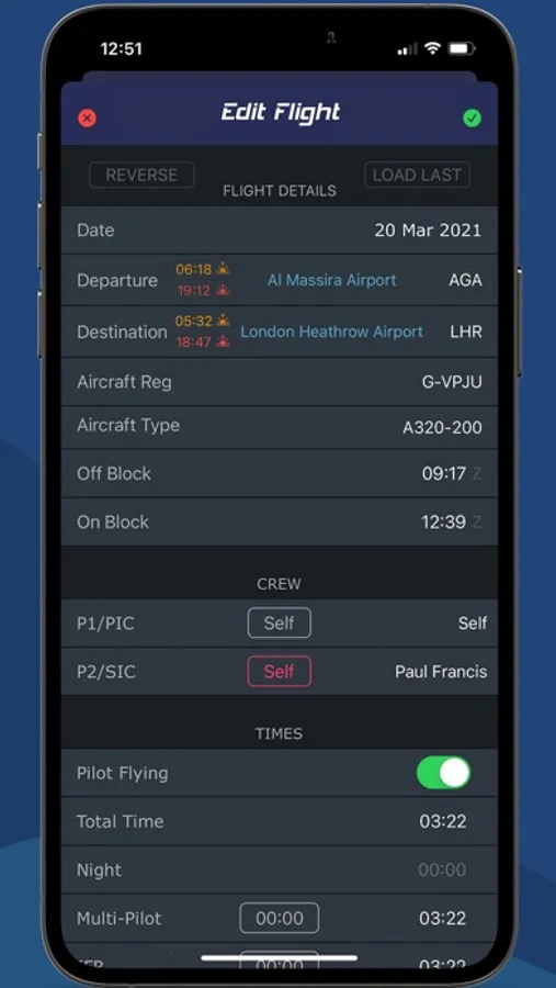 With the modern technology of user interface design, adding flight details could not be easier. Thanks to the automatic cloud synchronisation, you don’t have to worry about backing up your data, it does it automatically for you. To make your Logbook experience easier, Night time calculation is fully automated and with the most accurate night formula.