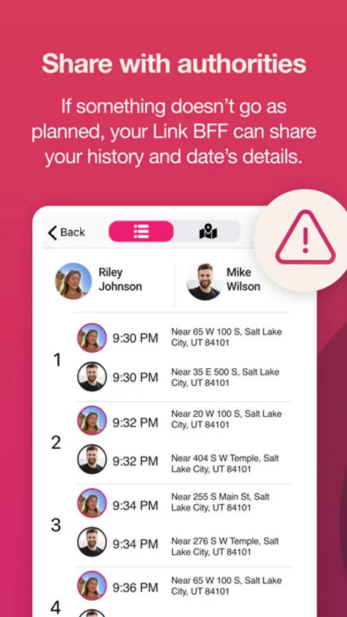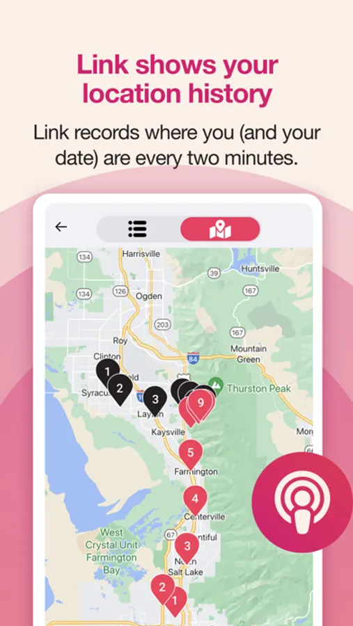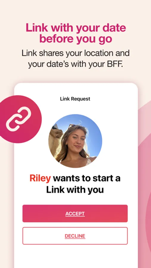 Pick your trusted user and Link will display your location every two minutes, so they can be sure you’re safe every step of the way.