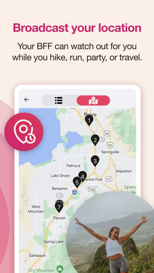 -Broadcast your location to a friend while you hike, run, travel, and more.