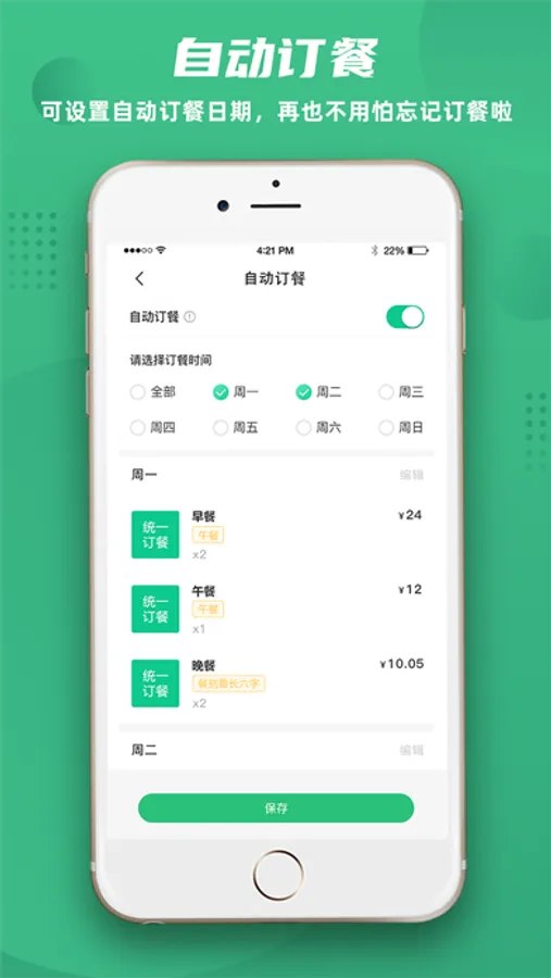 可设置自动订餐日期,再也不用怕忘记订餐啦