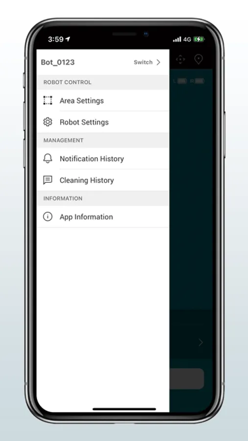 You can use the following features with this application; CLEANING in several modes, MAPPING for recognizing the shape of the room, CLEANING HISTORY for confirming the cleaned date/time with the map of cleaned area, and SETTINGS.
