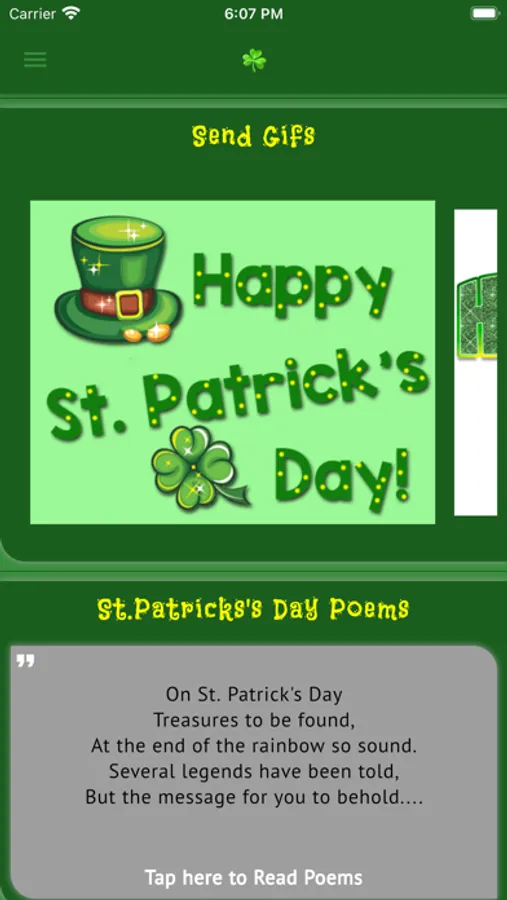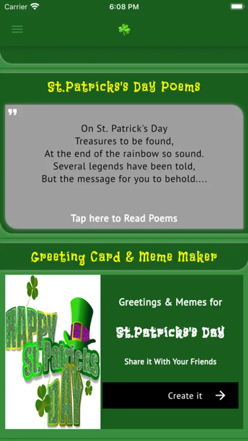 This app brings you the best collection of Text,Images, Gifs, Messages, Quotes, Captions, Poems, Status, Meme, e-cards of Saint Patrick's Day .