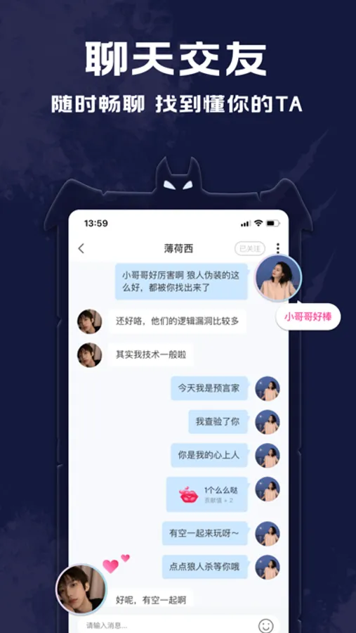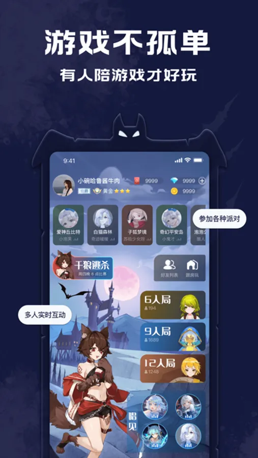 个性秀场:众多服饰装扮可供搭配,打造专属于你的独特形象,成为魔幻狼人杀世界里的一员。可爱甜心、时尚先锋、酷帅潮流,各种风格由你驾驭,还有狼人杀角色套装任你挑选,与众多玩家共同打造缤纷多彩的狼人杀世界!