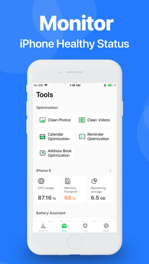 In addition, the app also detects hardware infornmation of current device and keep device running smoothly and healthly.