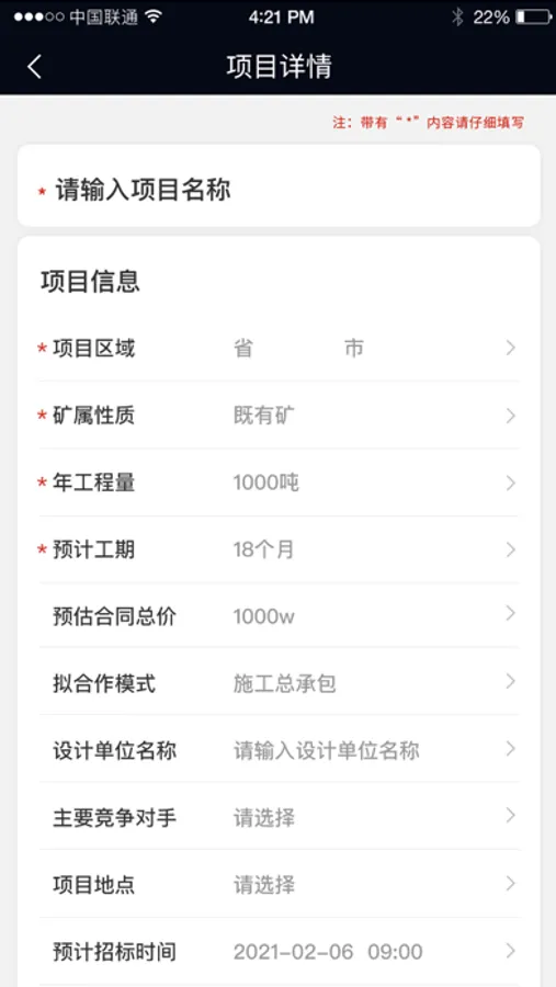 【新增项目详情】用户创建新项目详情卡片,输入项目相关信息,实现项目信息实时共享。