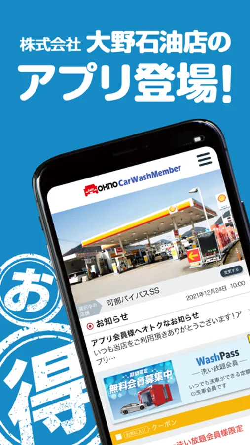 愛車のトータルサポートなら株式会社大野石油店のアプリ「OHNO CARWASH」にお任せ下さい!