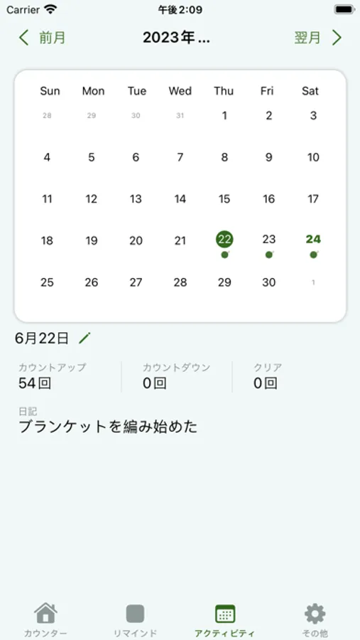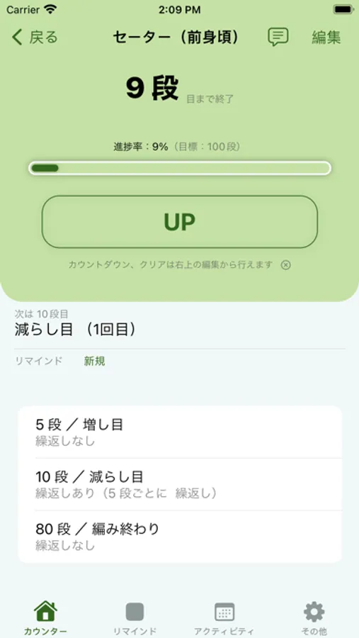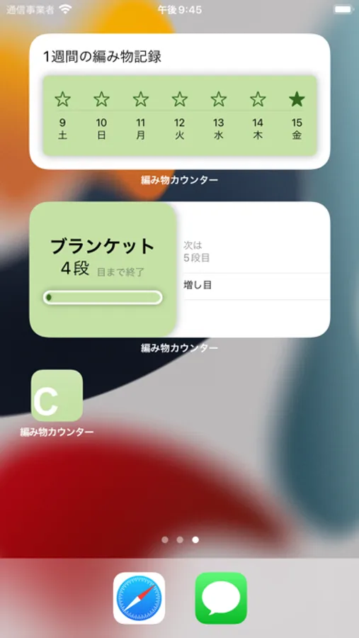 何段まで編んだか、次のリマインドの内容がウィジェットで見れます!