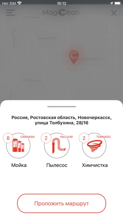 - проложить кратчайший маршрут до выбранной Вами автомойки;