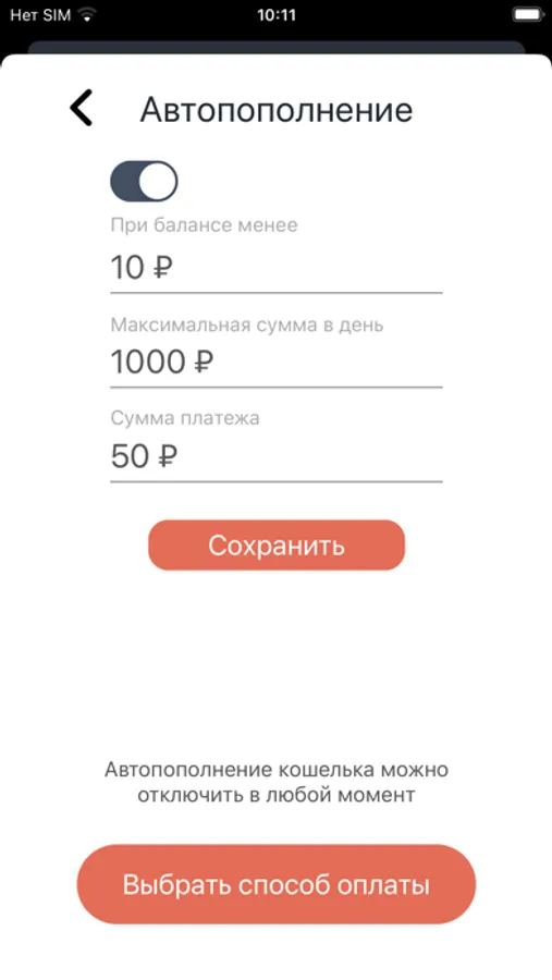 - пополнить баланс мобильного кошелька приложения используя один из возможных