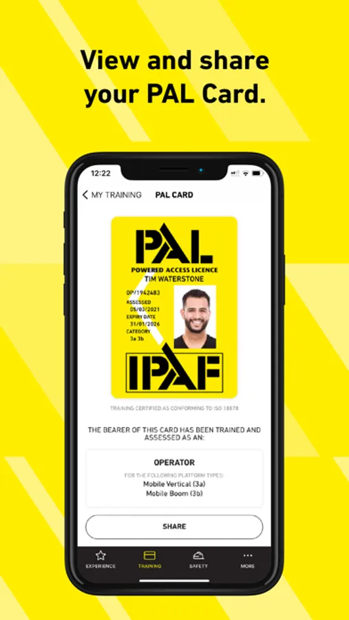 IPAF’s ePAL app is your new digital wallet to store and share your IPAF powered access licences and qualifications, including the PAL Card for mobile elevating work platform (MEWP), mast climbing work platform (MCWP) and hoist operators. Competent Assessed Persons (CAP), MEWPs for Managers, Site Assessment (for MEWP Selection) all can be added.