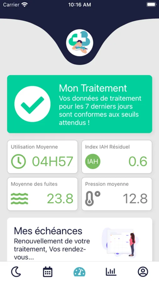 iGEIA pour les patients permet le suivi quotidien du traitement de l'apnée du sommeil et replace le patient au centre de son traitement en facilitant la communication avec son médecin et son prestataire de santé à domicile.