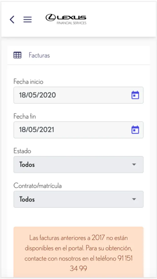 ¿Tiene un contrato de Leasing o renting? No se preocupe más por recibir su factura mensual. Desde la App Mi Banco Lexus tendrá acceso directo siempre a todo el histórico de facturas y mensualmente se añadirán las nuevas.