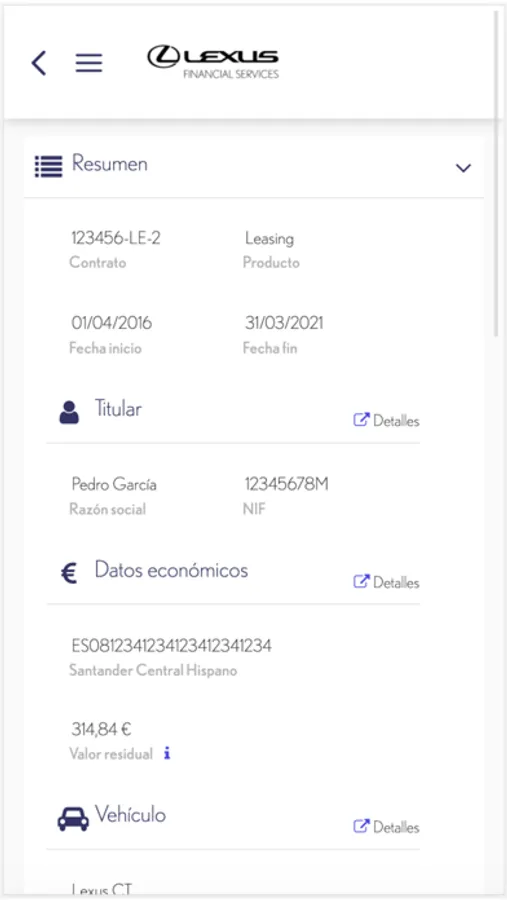 Además, si tiene un contrato de renting con nosotros, podrá visualizar en la App Mi Banco Lexus, los servicios incluidos en el contrato.