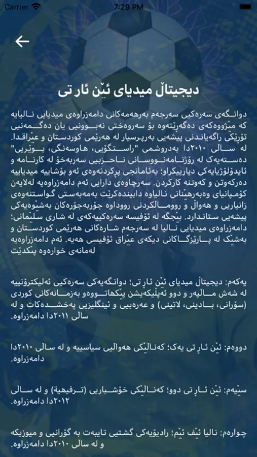 دوانگەی سەرەکیی سەرجەم بەرھەمەکانی دامەزراوەی میدیایی نالیایە کە مێژووەکەی دەگەڕێتەوە بۆ سەروەختی نەبوونیی یان دەگمەنیی تۆڕێکی راگەیاندنی پیشەیی بەرپرسیار لە ھەرێمی کوردستان و عێراقدا. لە ساڵی ٢٠١٠دا بەدروشمی "راستگۆیی، ھاوسەنگی، بوێریی" دەستەیەک لە رۆژنامەنووسانی ناحزبیی سەربەخۆ لە کارنامە و ئایدۆلۆژیایەکی دیارییکراو؛ بەئامانجی پڕکردنەوەی ئەو بۆشاییە میدیاییە دەرکەوتن و کەوتنە کارکردن. سەرچاوەی دارایی ئەم دامەزراوەیە لەلایەن کۆمپانیای وەبەرھێنانی نالیاوە دابیندەکرێت