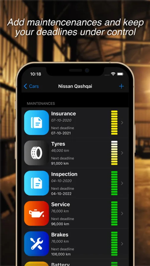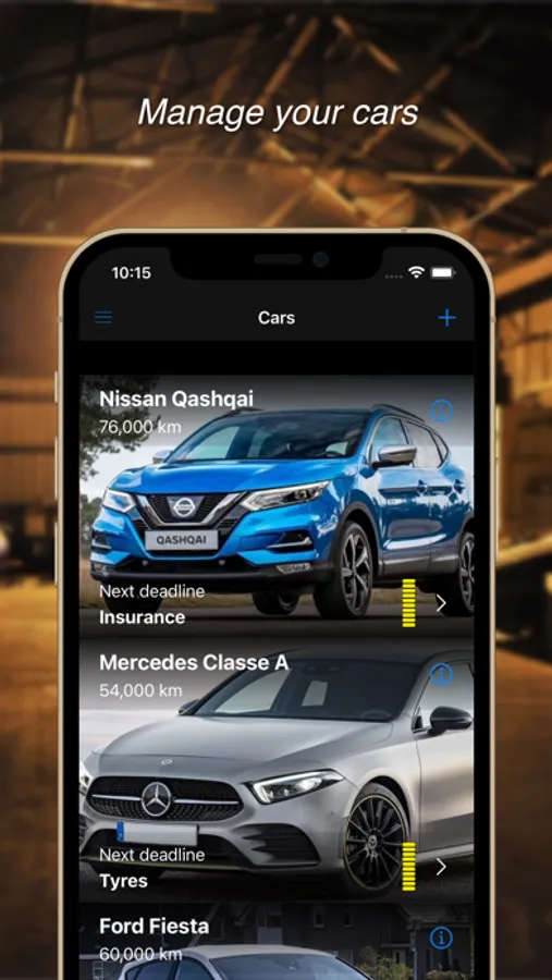 In a clear and simple way you can manage the maintenance, be informed on deadlines, check the total cost and see the historical maintenances.