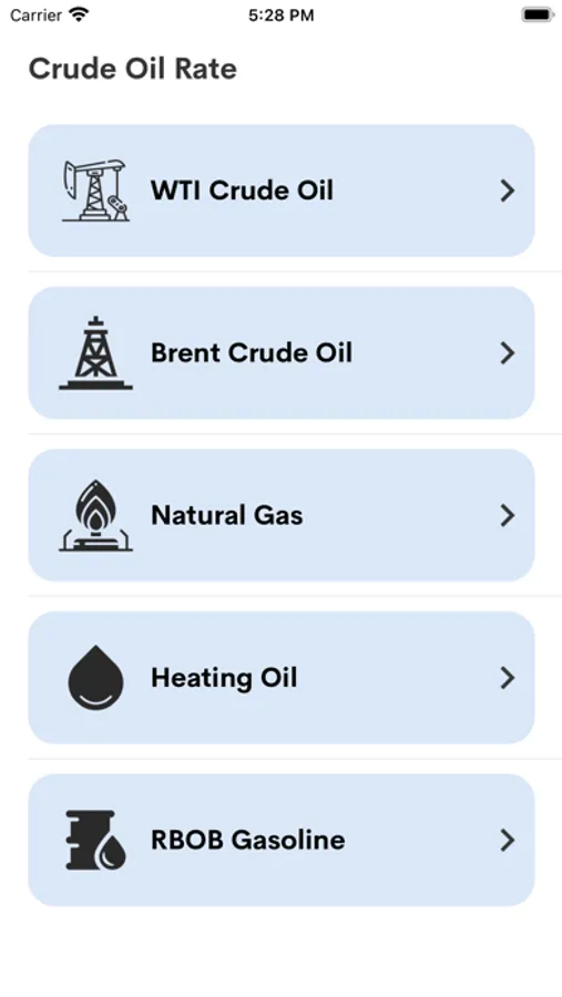 This useful and handy app for know WTI Crude Oil, Brent Crude Oil, Natural Gas, Heating Oil and RBOB Gasoline.