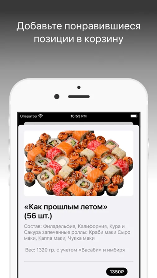 Как сделать заказ в приложении «JSan»: выберите понравившиеся позиции из меню, добавьте их в корзину и перейдите на экран оформления заказа (по нажатию на иконку корзины).