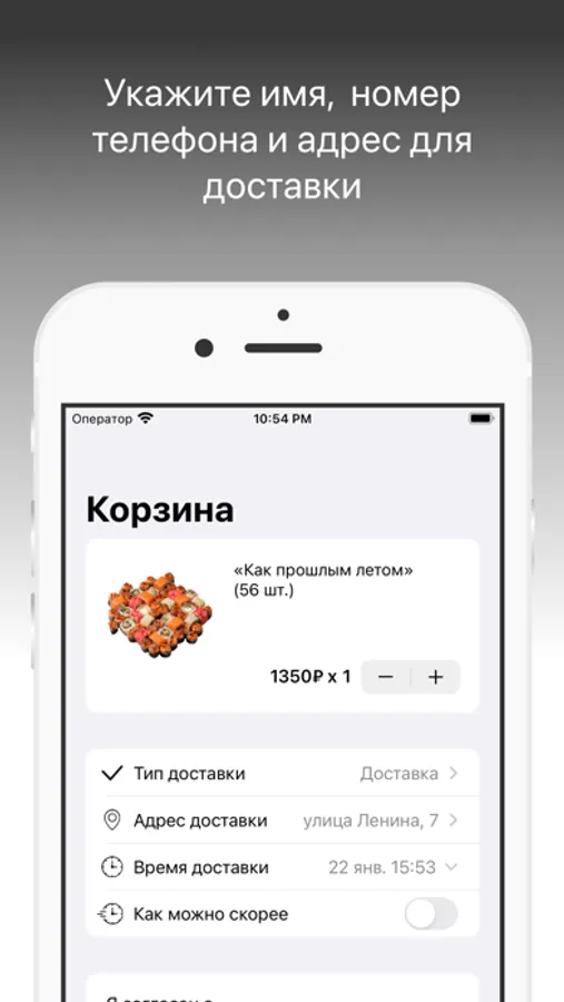 Укажите время, когда хотите прийти за своим заказом или выберите доставку с указанием времени и адреса доставки.