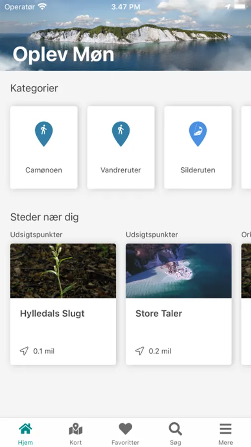 Din guide til storslåede natur- og kulturoplevelser på Møn, Nyord og Bogø. Lad fx app’en føre dig rundt i den vilde, mønske natur, og bliv klog på områdets særlige dyre- og planteliv. Gå på opdagelse i de gamle gravhøje fra stenalderen, oplev fantastiske kalkmalerier i øens kirker, og få hjælp til at finde vej til de bedste badestrande. Find digitale vandrekort over Camønoen og andre naturskønne ruter – og besøg Møns Klint, hvor du kan udforske skov og strand og finde spor fra Danmarks fødsel. Hvis du får brug for et hvil undervejs, kan du desuden finde forslag til gratis overnatning i det fri. Kort sagt, alt hvad du har brug for til din næste ø-ferie.