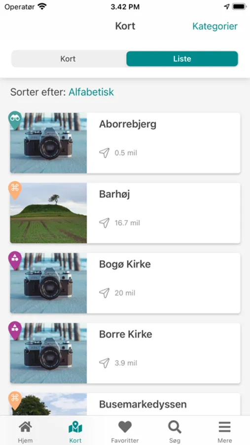 Indholdet er overskueligt opdelt i kategorier, så du nemt kan søge efter lige præcis den oplevelse, du leder efter. Du kan også gemme dine yndlingssteder og -ruter, så du hurtigt kan finde dem frem igen.