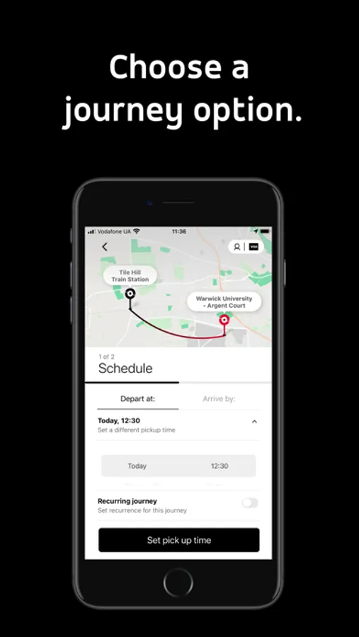 With a few taps, book an on-demand journey in the app and our technology will pair you with other people heading your way.