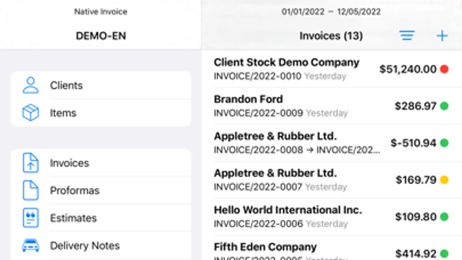Native Invoice is designed to manage all your invoicing-related documents, clients, items, and services with private Apple iCloud data storage.