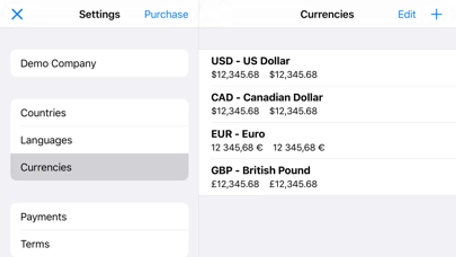 • Foreign currency invoicing in any currency and language with automatic number formatting