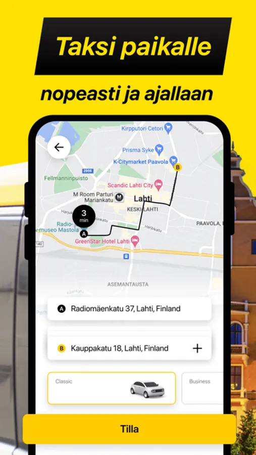 Lahti taksi is a taxi booking app that provides local taxi rides for travelers and general riders needing quality ground transportation. Lahden taksi connects users with licensed drivers that are available to take you around the region.