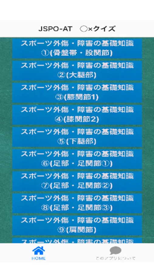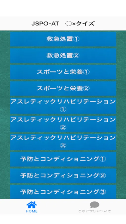 日本スポーツ協会公認アスレティックトレーナー(JSPO-AT)の資格取得を目指す方向けのクイズアプリです。