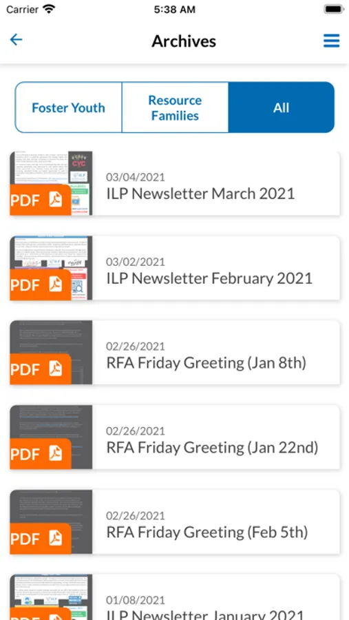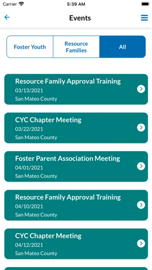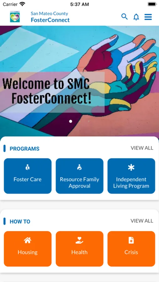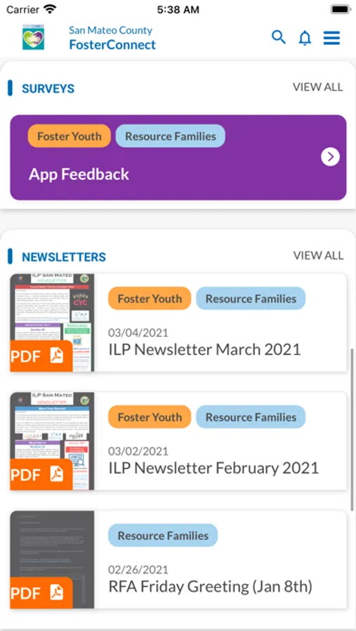 Application for sharing resource information and program updates to current and former foster youths and resource parents in San Mateo County