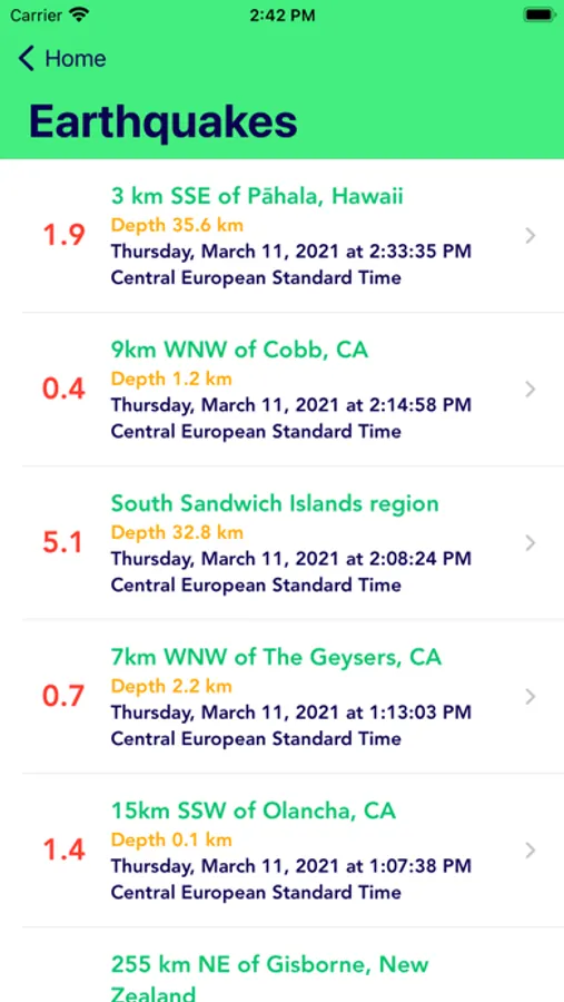 **Proximity Alerts:** By utilizing your device's location, Earthquake Alert enhances your safety measures by providing instant access to earthquakes and possible tsunamis that have occurred near you on any given day.