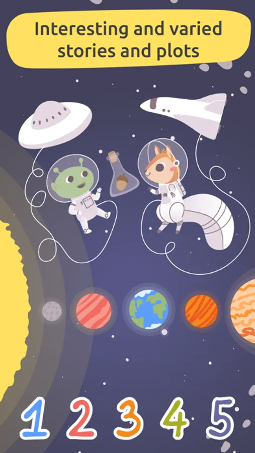Together with our educational game, you can nurture your kid’s desire for knowledge and just spend some quality time together. In our app, you will find such valuable things as: