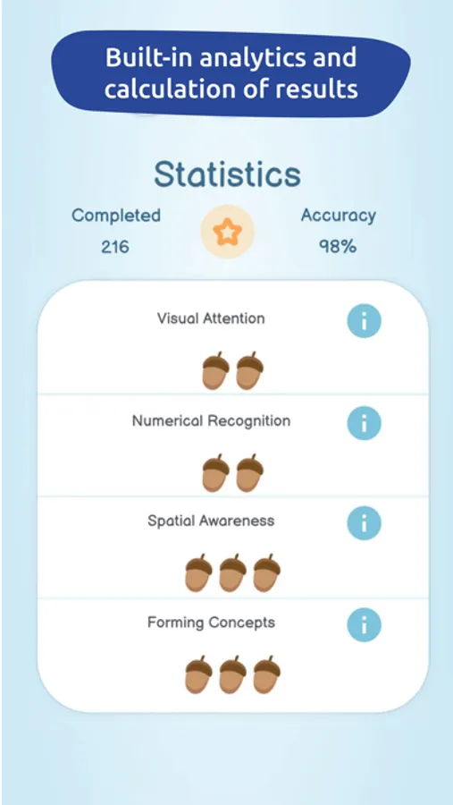 All exercises were profoundly thought through. We developed our app collectively with pediatric neuropsychologists, teachers, specialists, which helped us perfectly adjust it for 3, 4, and 5 years old kids.
