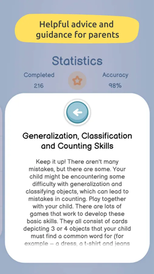 In addition, for parents, we have developed a block with statistics, thanks to which you can independently analyze the skills of the kid and understand what you need to "pull up.” Our kindergarten game for boys and girls will already give you recommendations on how to do this. Psychologists and teachers compiled all practical advice, so in our development program, you will find only helpful suggestions for developing the child's brain.