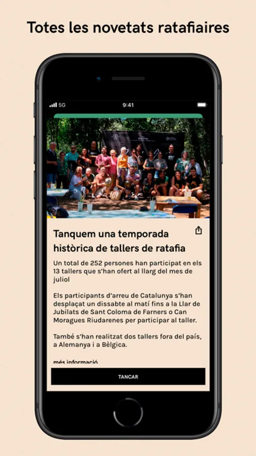 Amb l'app Ratafia tindràs accés a tota la programació del Mercat de les Herbes de la Ratafia i la Festa de la Ratafia, podràs inscriure't a les activitats, activar recordatoris i veure continguts a la carta i en directe.
