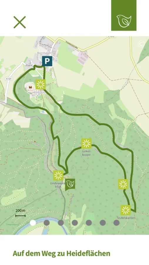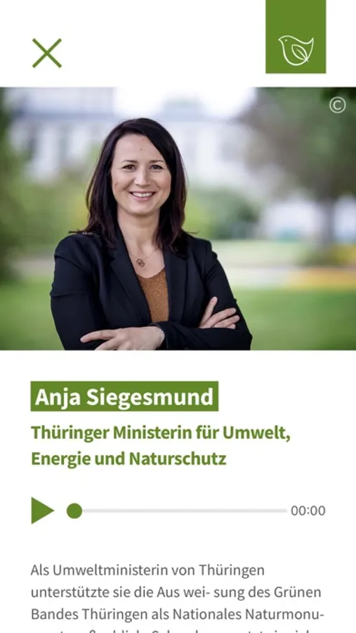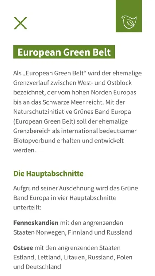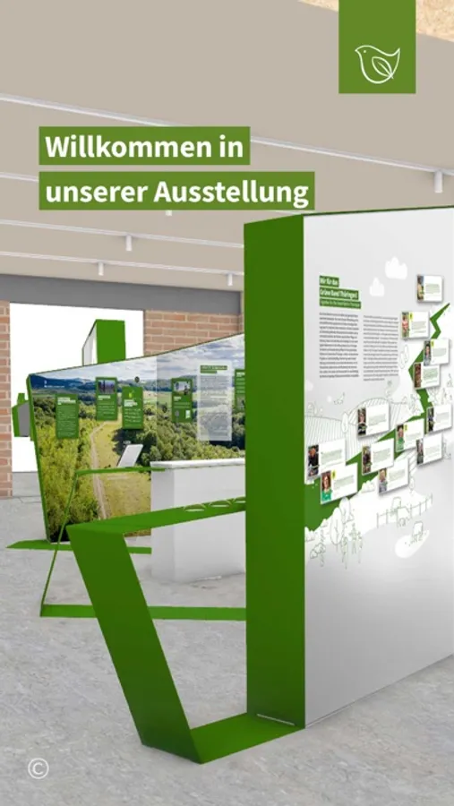 Die App erweitert die Ausstellung um interaktive Elemente und detailreiches Hintergrundwissen zum Grünen Band. Die digitalen Inhalte der Ausstellung können hier kontaktarm abgerufen und zum größten Teil auch zuhause nachgelesen und -gehört werden. So kann man den Zeitsprung von der ehemaligen Grenze zum Grünen Band als dreidimensionales Augmented Reality-Modell nachvollziehen, einen Grenzturm anschauen und Menschen, die am Grünen Band aktiv sind, zuhören. Slideshows zeigen anschaulich und in Kürze die Geschichte von Grenze und Grünem Band und laden zum Wandern und Entdecken des Grünen Bandes Thüringen ein.