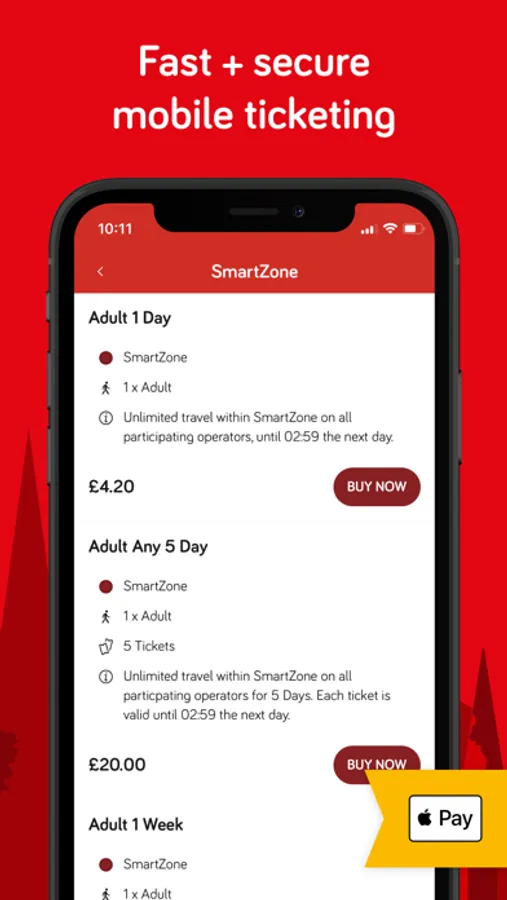 Mobile Tickets: Purchase mobile tickets securely with Apple Pay or a debit/credit card and show the driver when boarding - no more searching for cash!
