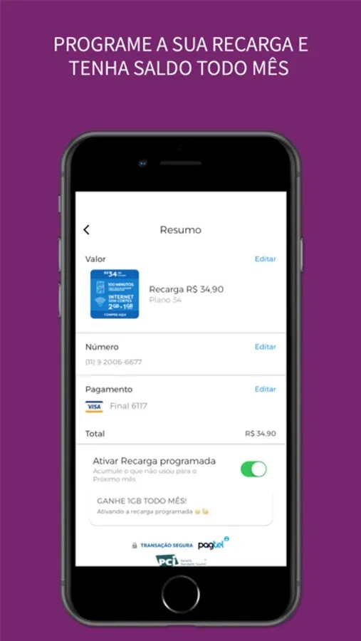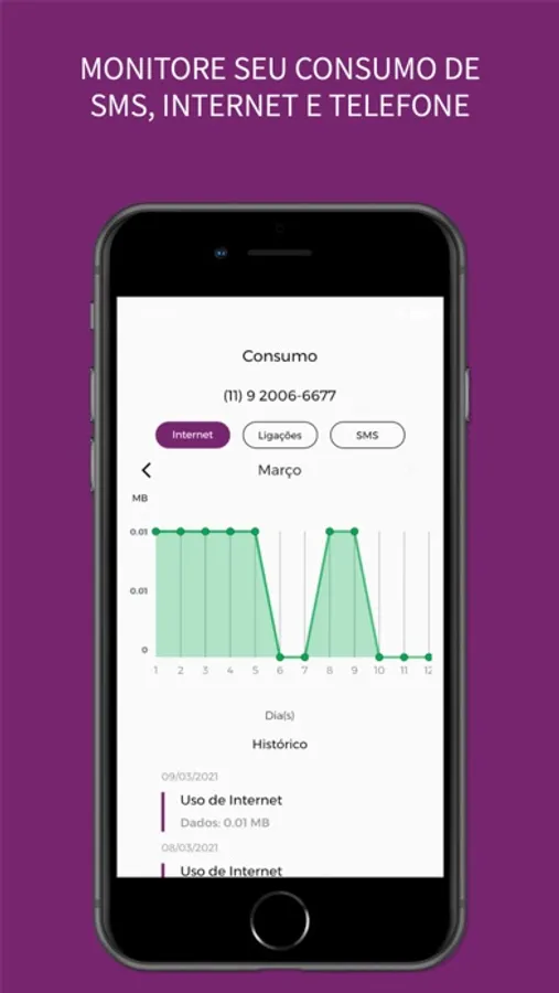 - Histórico das recargas realizadas online (aplicativo, site e por SMS).